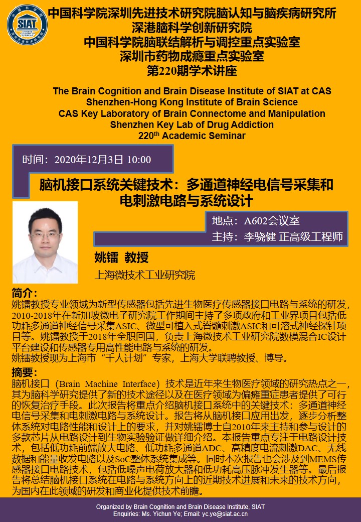 本次讲座由上海微技术工业研究院,姚镭教授做题为“脑机接口系统关键技术:多通道神经电信号采集