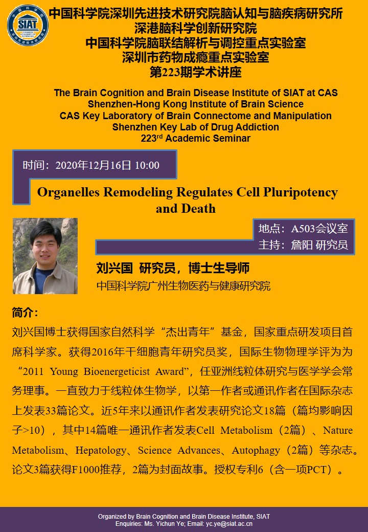 本次讲座由中国科学院广州生物医药与健康研究院,刘兴国研究员做题为“Organelles Remodeling Regulates