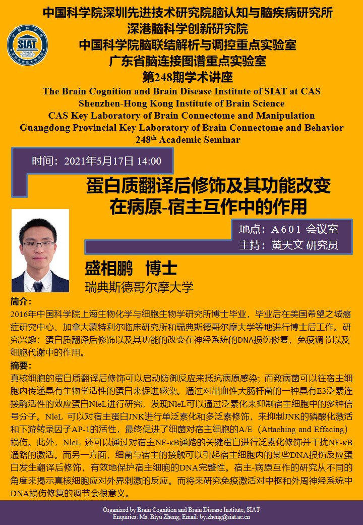 【2021年5月17日 脑所】蛋白质翻译后修饰及其功能改变在病原-宿主互作中的作用