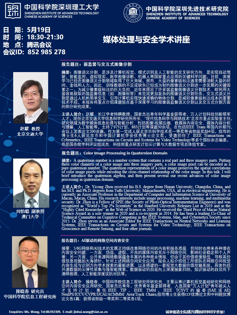 【2021年5月19日 数字所】媒体处理与安全学术讲