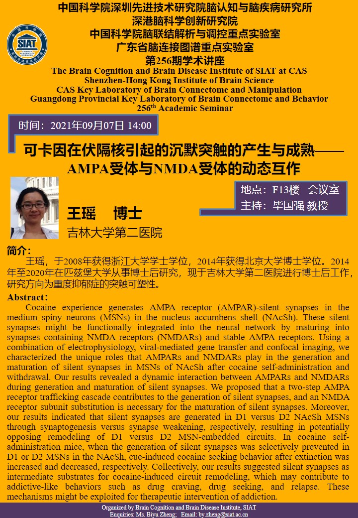 脑认知与脑疾病研究所将于2021年09月07日14:00,在F13楼会议室,举办第二百五十六期学术讲座。