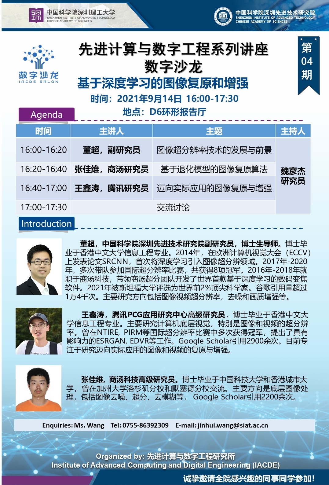 【2021年9月14日 数字所】数字沙龙第4期《基于深度学习的图像复原和增强》
