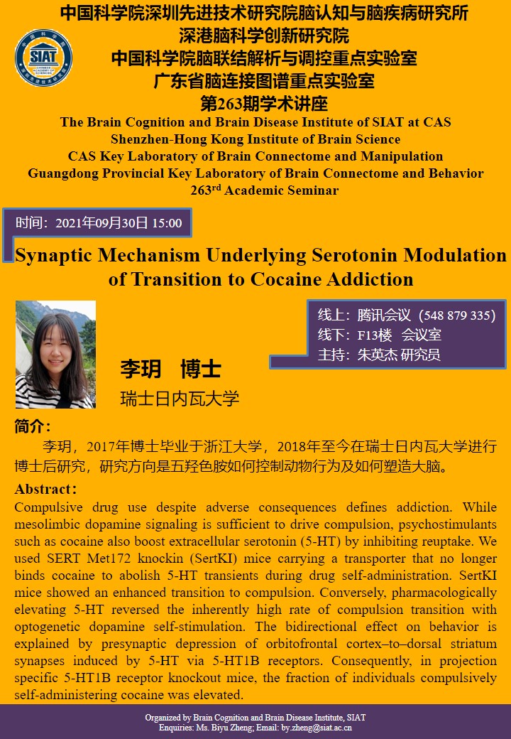 【2021年9月30日 脑认知与脑疾病研究所】Synaptic Mechanism Underlying Serotonin Modulation of Transition to Cocaine Addiction