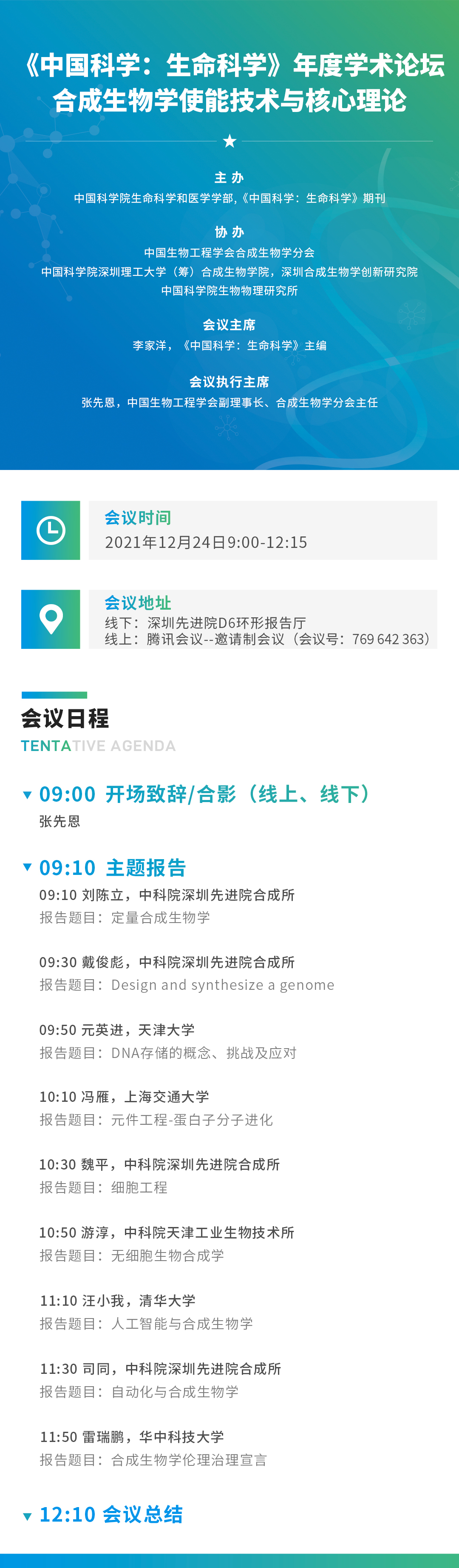 【2021年12月24日 合成生物所/合成生物学院】"合成生物学使能技术与核心理论”学术论坛