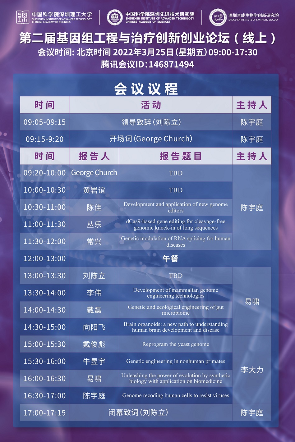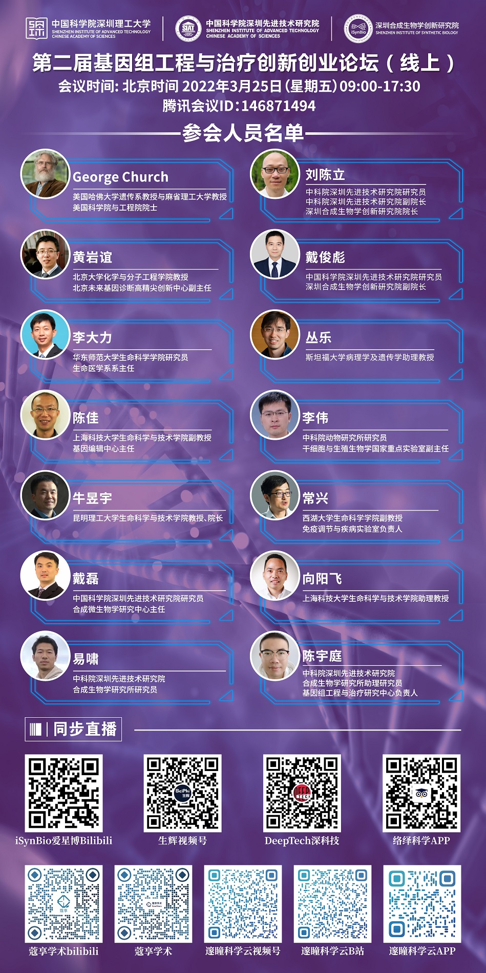 【2022年03月25日 合成所/合成生物学院】第二届基因组工程与创新创业论坛