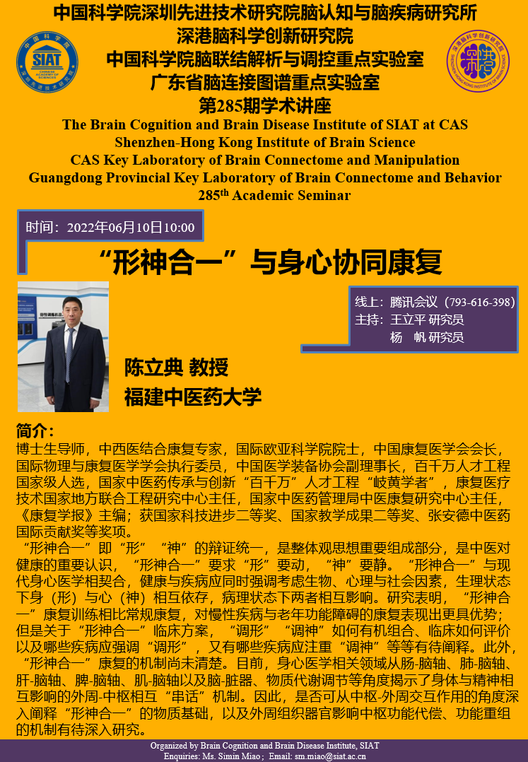 【2022年06月10日 脑认知与脑疾病研究所】形神合一”与身心协同康复