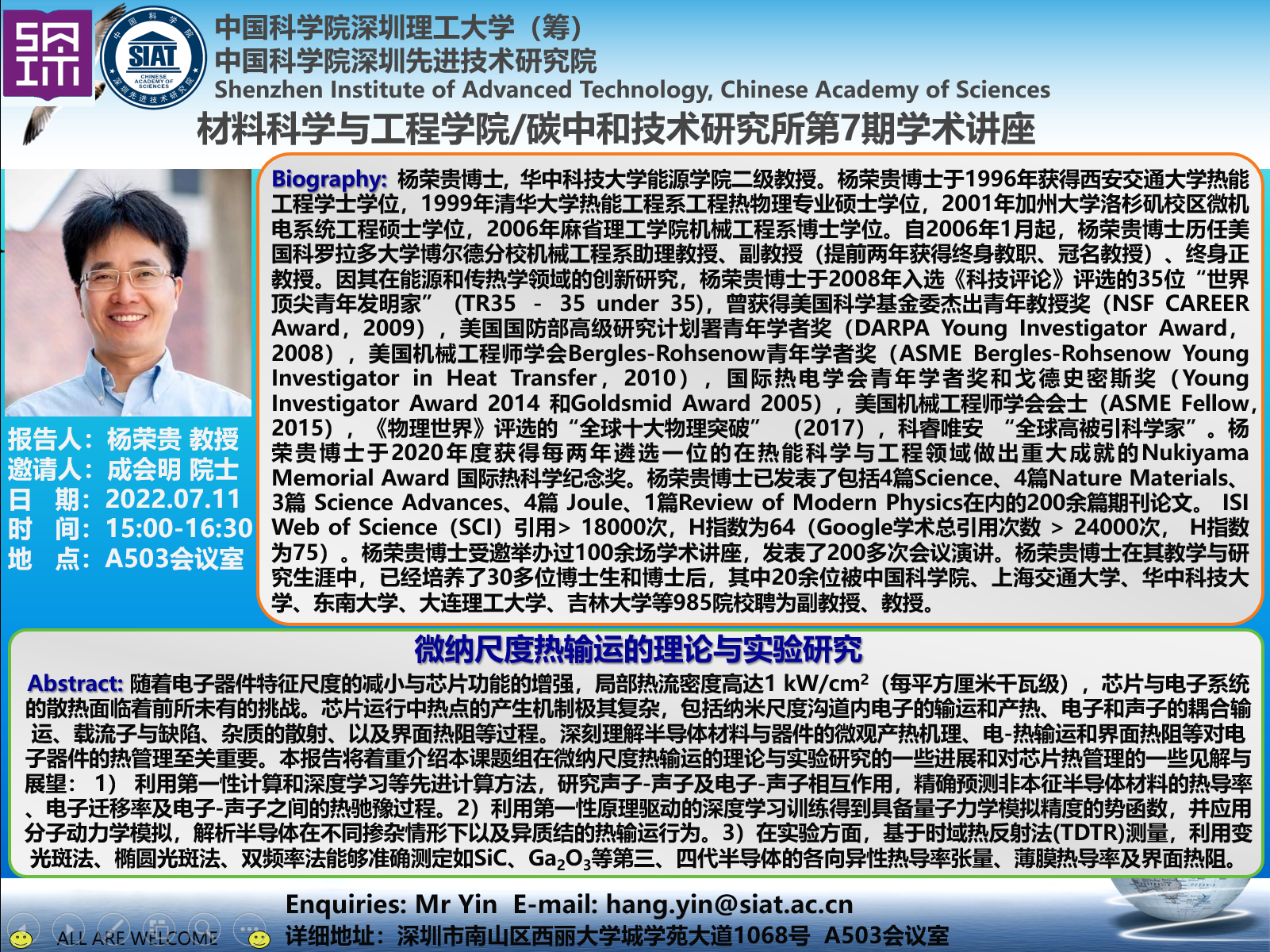 【2022年7月11日 材料科学与工程学院/碳中和技术研究所】微纳尺度热输运的理论与实验研究