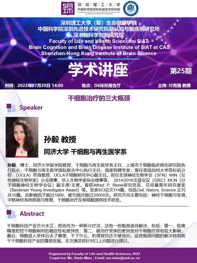 【2022年7月20日 生命健康学院/脑所】干细胞治疗的三大瓶颈