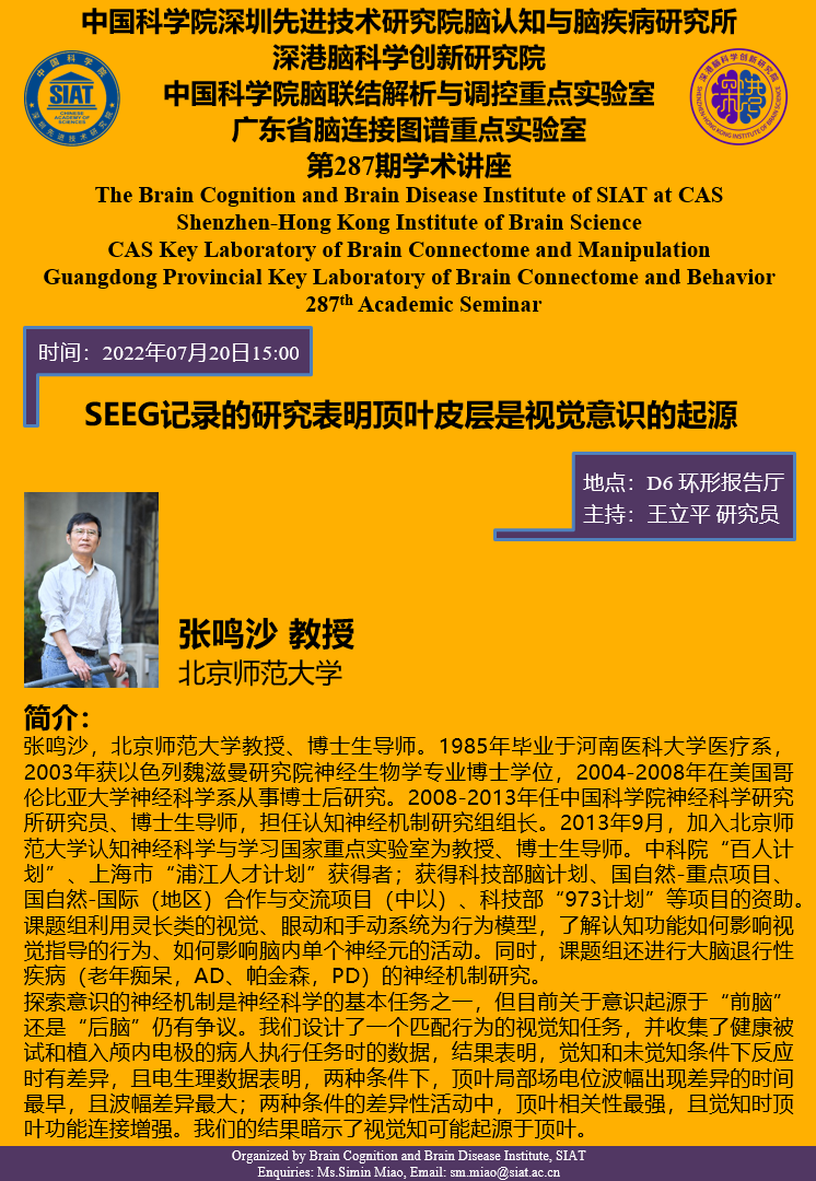 脑认知与脑疾病研究所将于2022年07月20日15:00,举办第287期学术讲座。