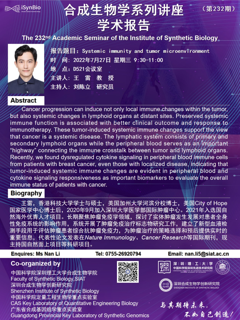 【2022年7月27日 合成所/合成生物学院】Systemic immunity and tumor microenvironment