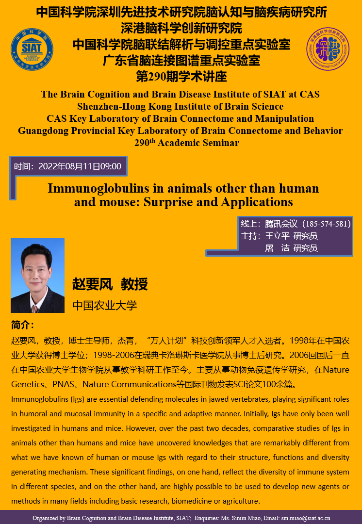 【2022年08月11日 脑认知与脑疾病研究所】Immunoglobulins in animals other than human and mouse: Surprise and Applications