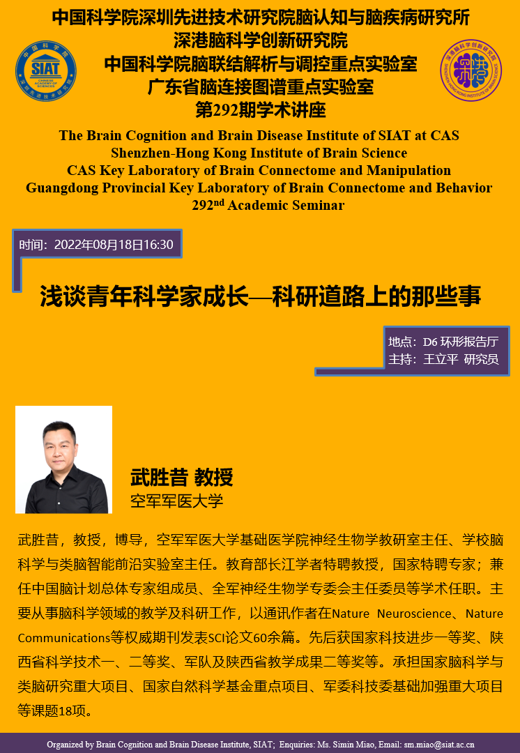 脑认知与脑疾病研究所将于2022年08月18日16:30,举办第292期学术讲座。