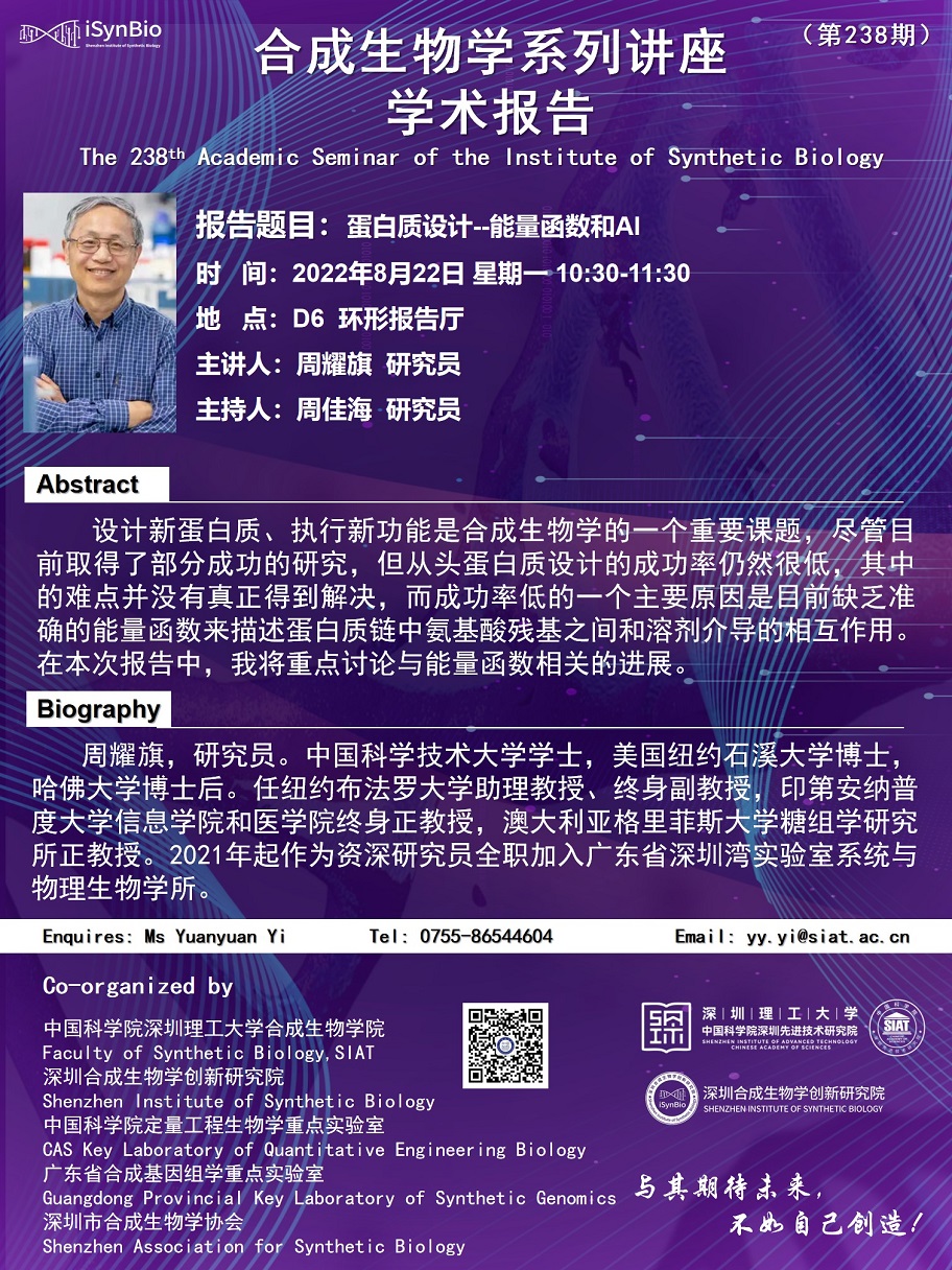 【2022年8月22日 合成所/合成生物学院】蛋白质设计--能量函数和AI