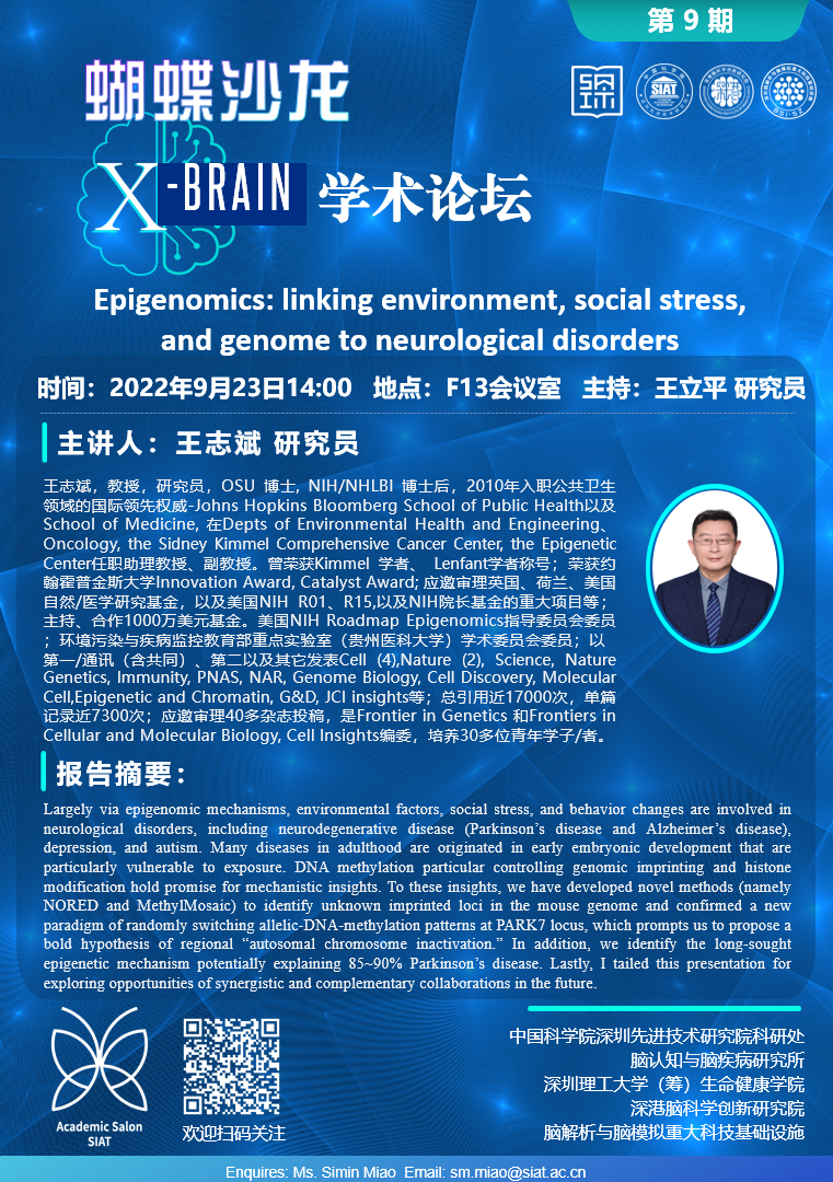 蝴蝶沙龙"X-Brain"学术论坛第9期将于2022年9月23日14:00举行,地点:F13会议室。