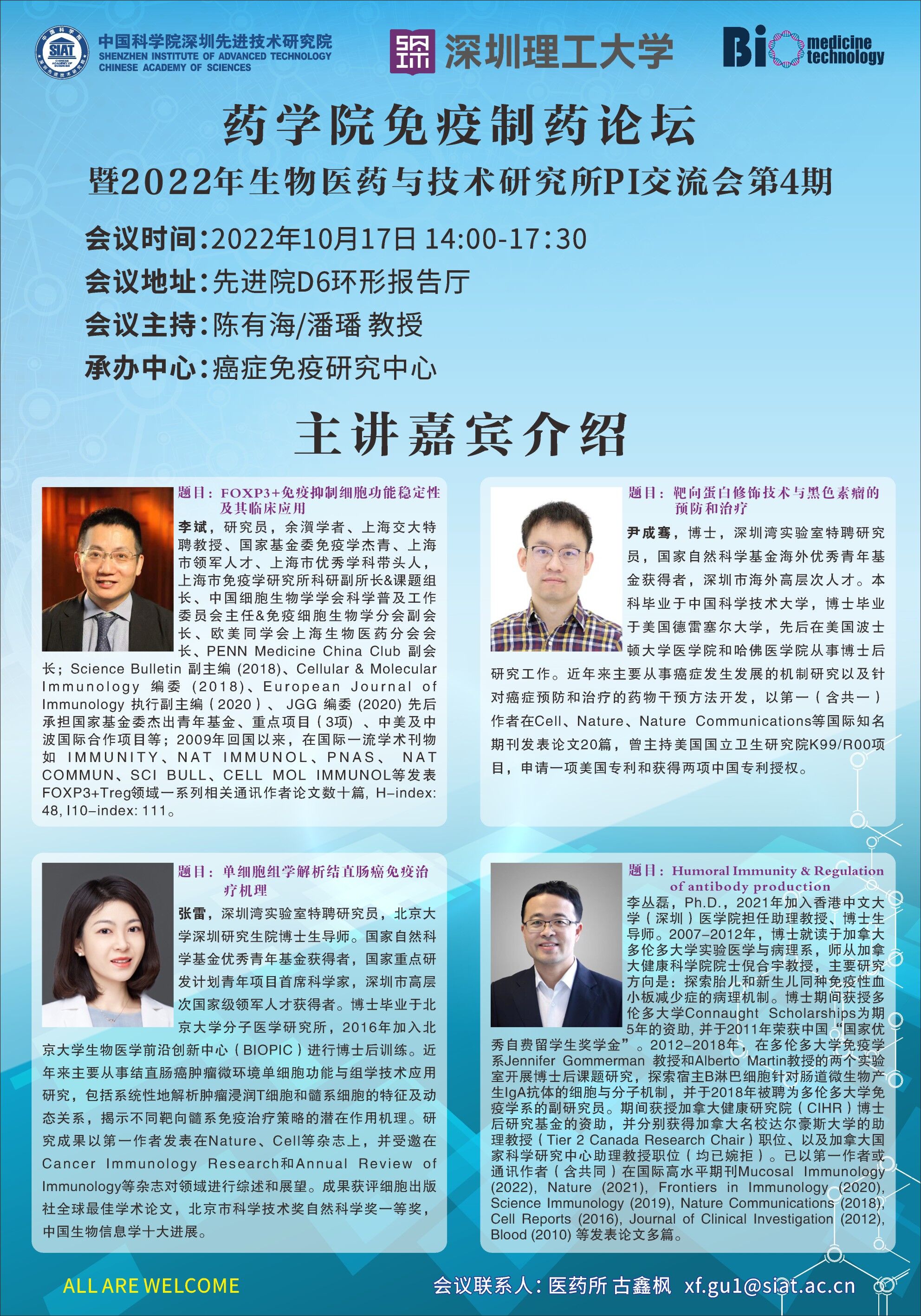 【2022年10月17日 药学院】免疫制药论坛暨2022年生物医药与技术研究所PI交流会第4期