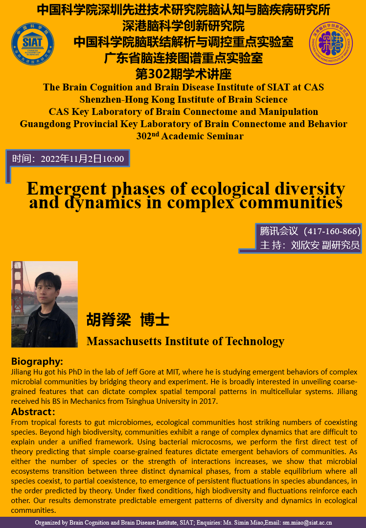 【2022年11月2日 脑认知与脑疾病研究所】Emergent phases of ecological diversity and dynamics in complex communities