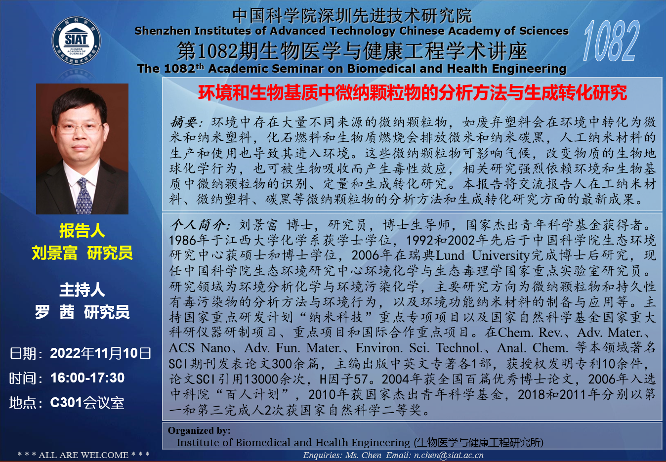 【2022年11月10日 医工所】环境和生物基质中微纳颗粒物的分析方法与生成转化研究