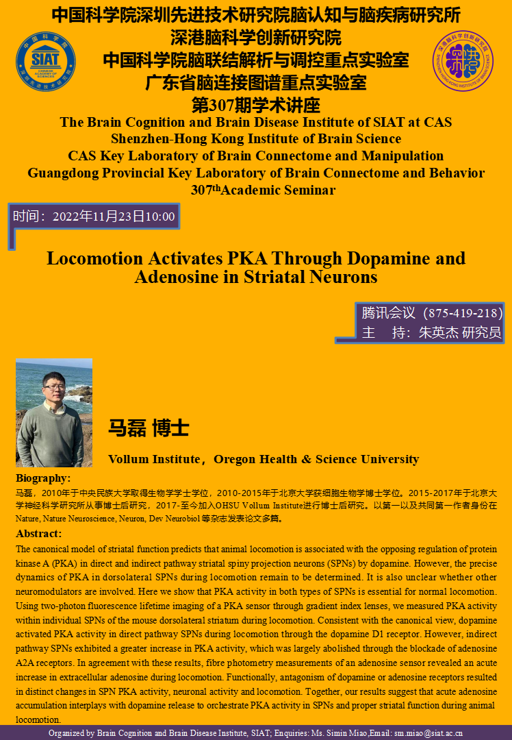 【2022年11月23日 脑认知与脑疾病研究所】Locomotion Activates PKA Through Dopamine and Adenosine in Striatal Neurons