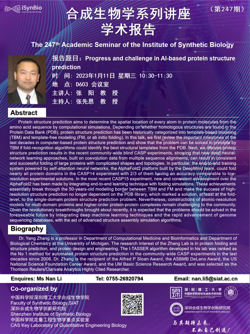 【2023年1月11日 合成所/合成生物学院】Progress and challenge in AI-based protein structure prediction