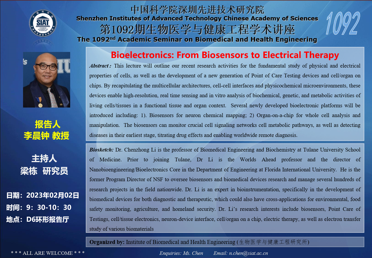 医工所第1092期学术讲座将于 2023年2月2日(周四)9:30-10:30 在D6环形报告厅举行。