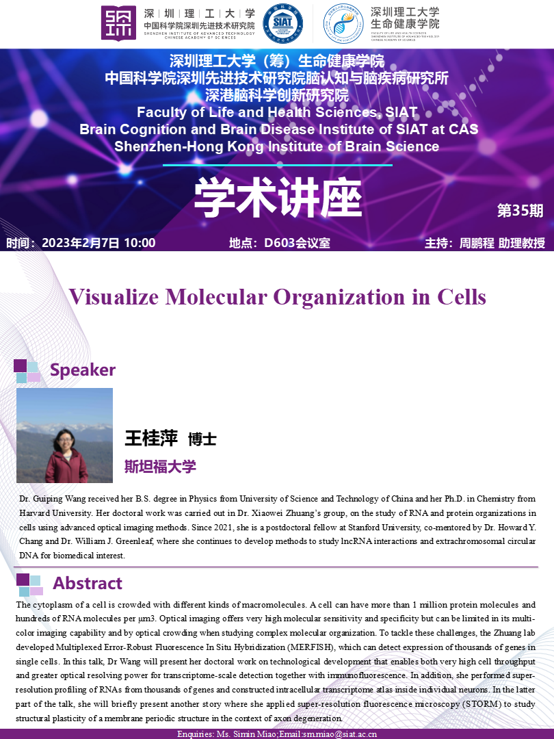 【2023年2月7日 生命健康学院/脑所】Visualize Molecular Organization in Cells