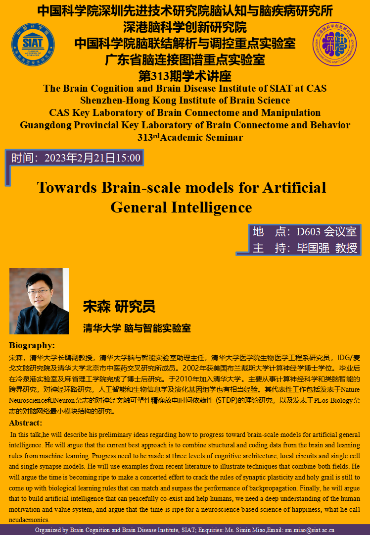 脑认知与脑疾病研究所将于2023年2月21日15:00,举办第313期学术讲座。