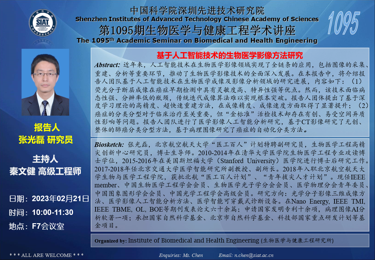 【2023年2月21日 医工所】基于人工智能技术的生物医学影像方法研究