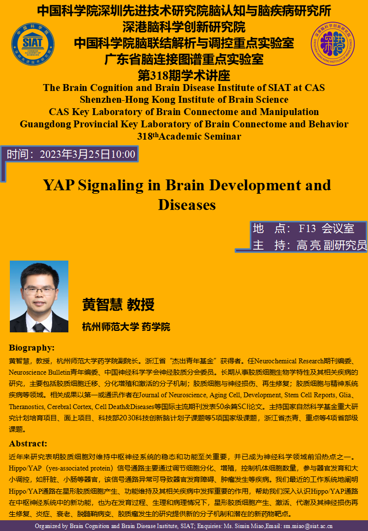 由杭州师范大学,黄智慧 教授,带来“YAP Signaling in Brain Development and Diseases”的专题报告。