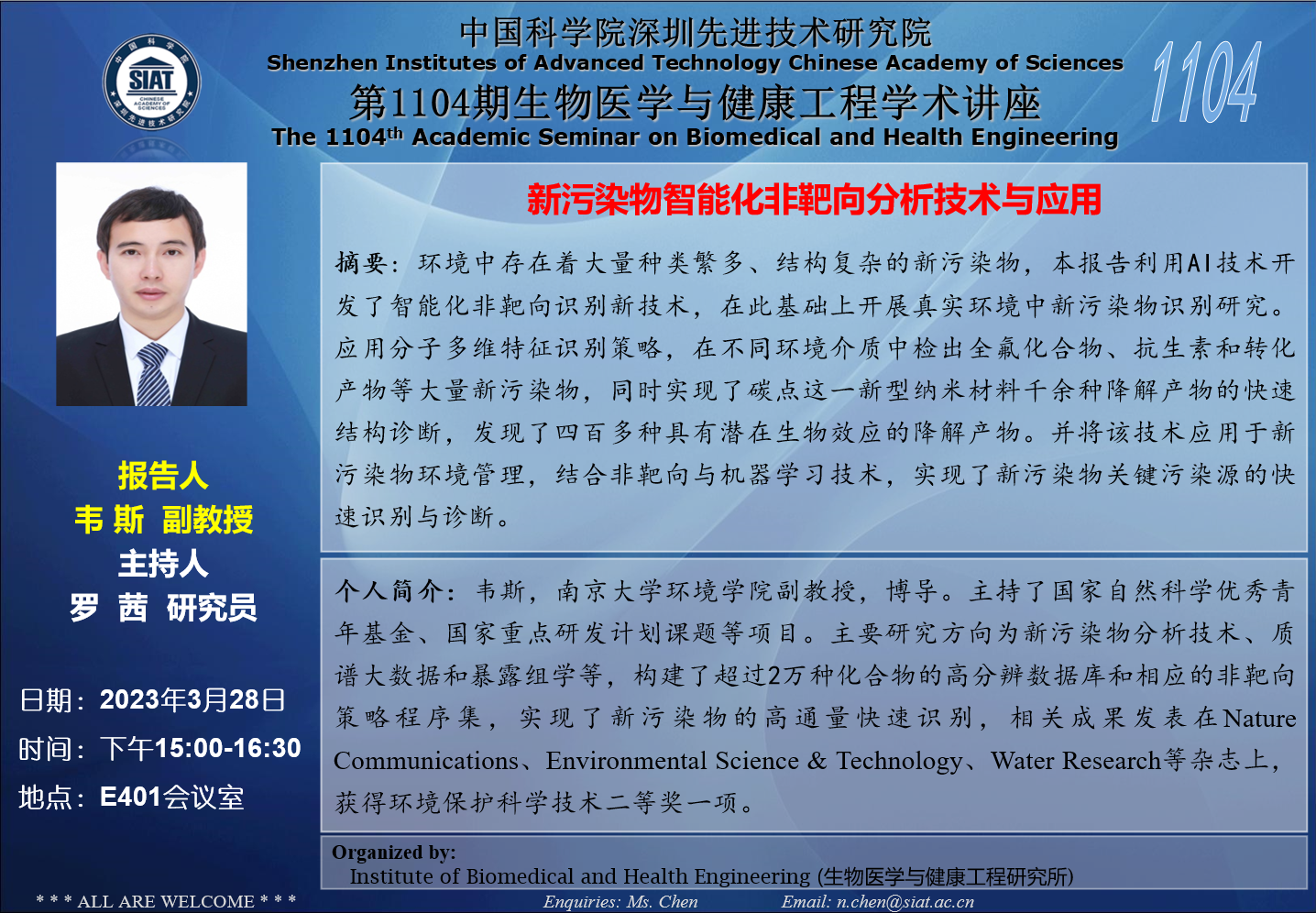 【2023年3月28日 医工所】新污染物智能化非靶向分析技术与应用