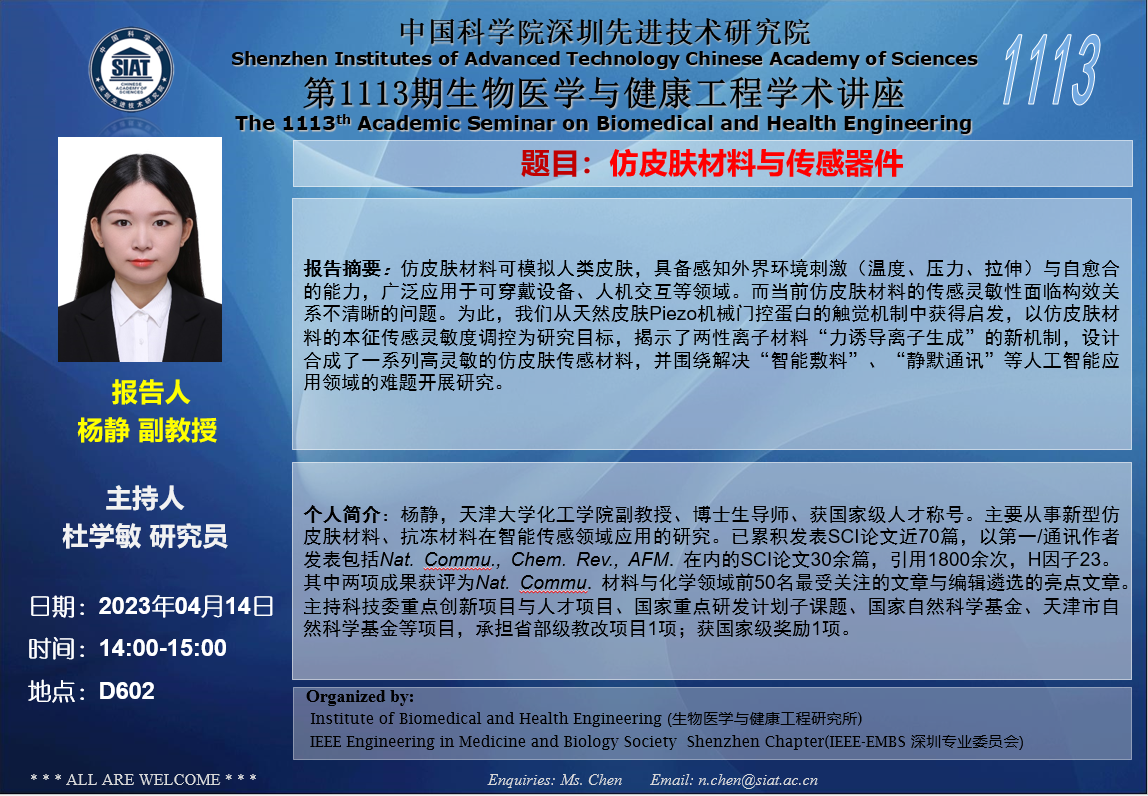 医工所第1113期学术讲座将于 2023年4月14日(周五) 14:00-15:00 在D603会议室举行。