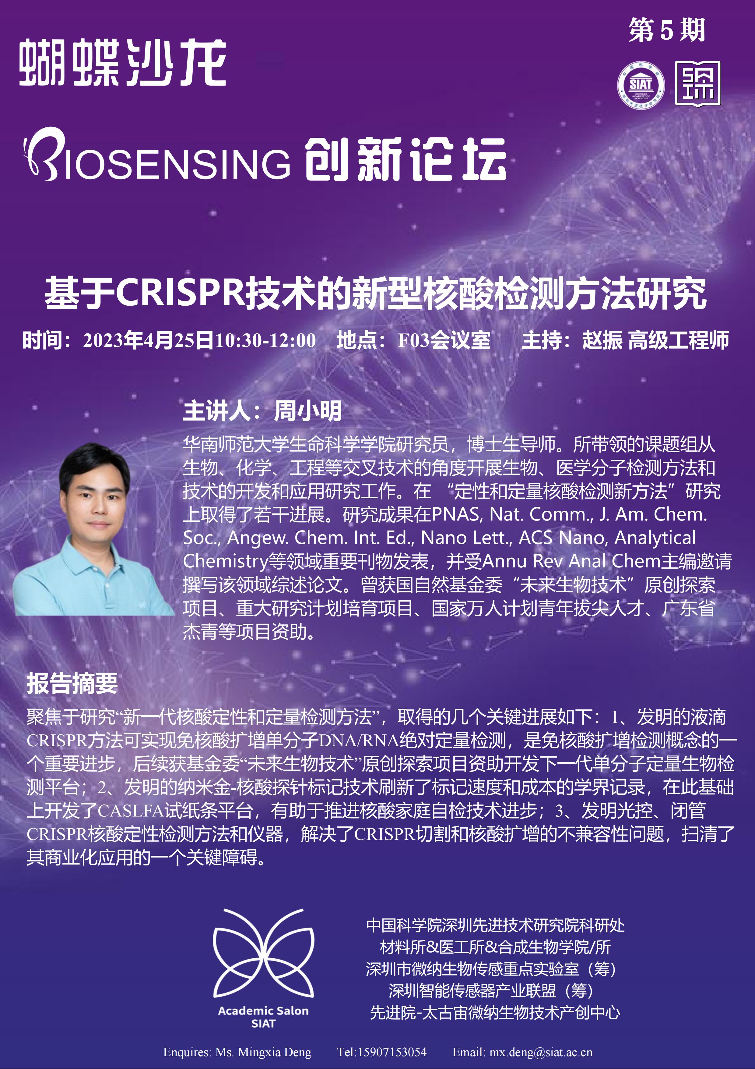 【2023年4月25日 科研处与材料所/医工所/合成生物所】基于CRISPR技术的新型核酸检测方法研究