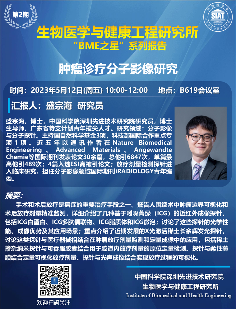 届时,盛宗海 研究员将为大家带来题为“肿瘤诊疗分子影像研究”的报告。