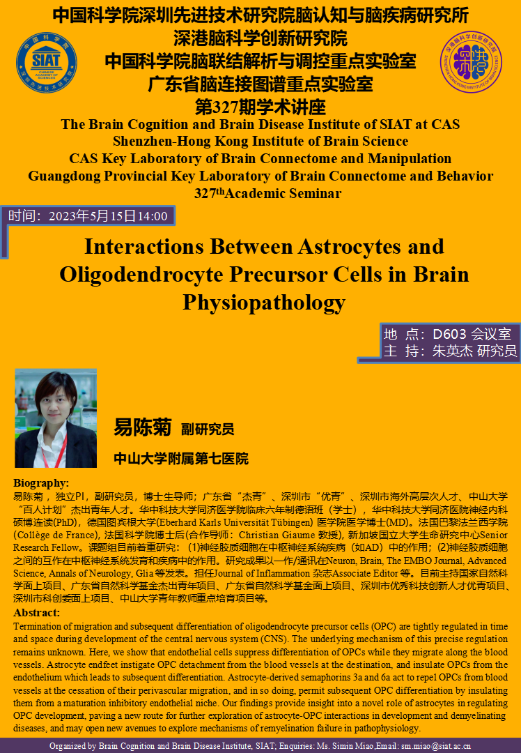 【2023年5月15日 脑认知与脑疾病研究所】Interactions Between Astrocytes and Oligodendrocyte Precursor Cells in Brain Physiopathology