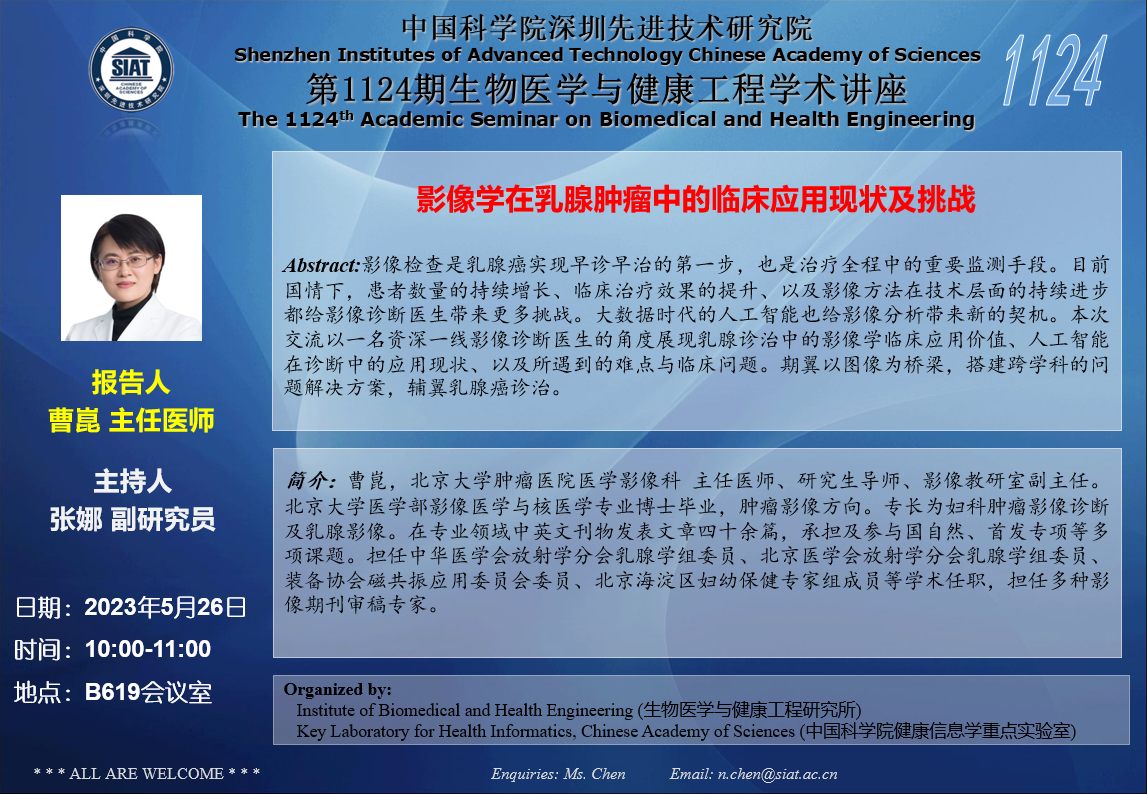 医工所第1124期学术讲座将于 2023年5月26日(周五)10:00-11:00 在B619会议室举行。