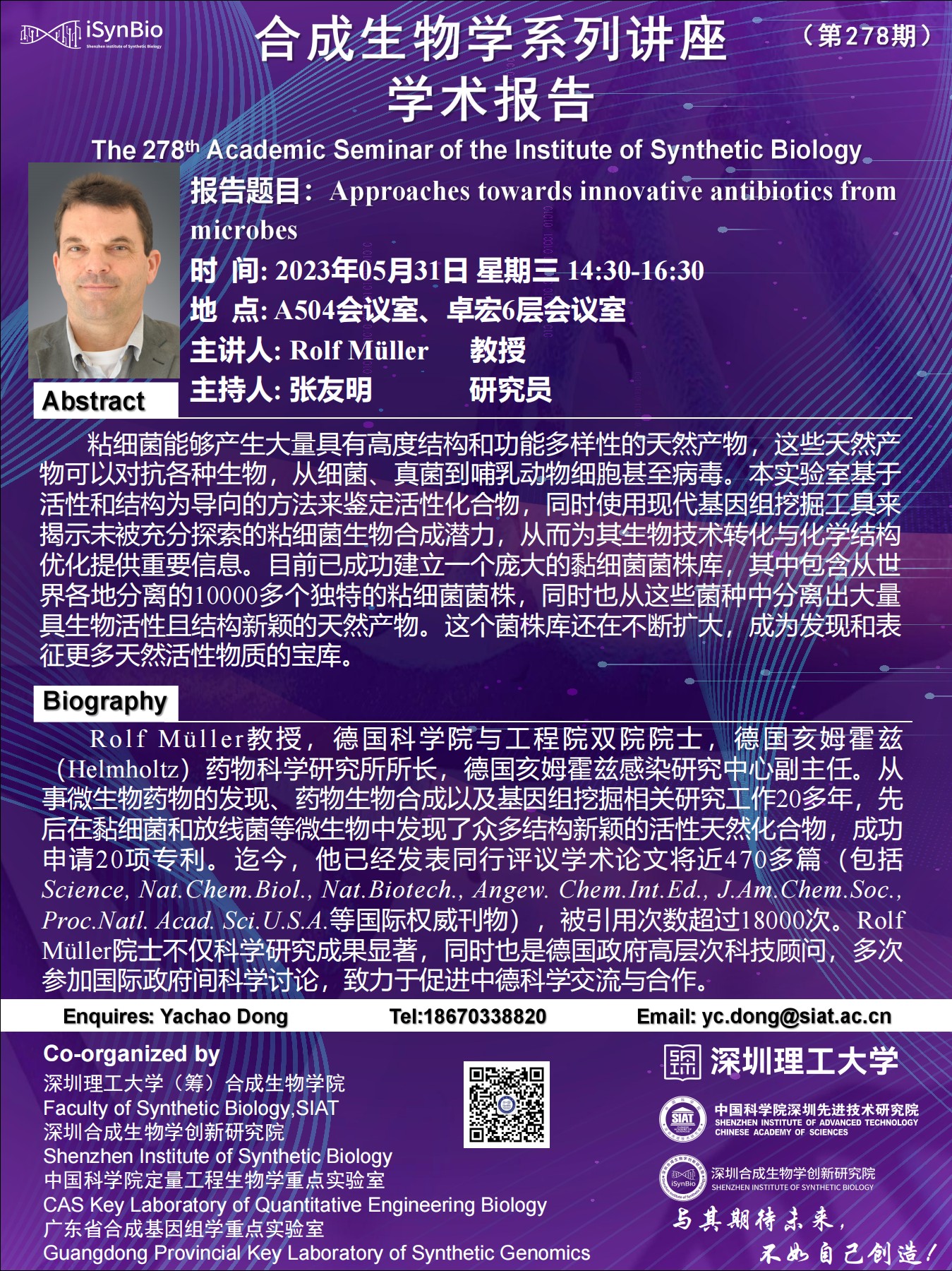 【2023年5月31日 合成所/合成生物学院】Approaches towards innovative antibiotics from microbes