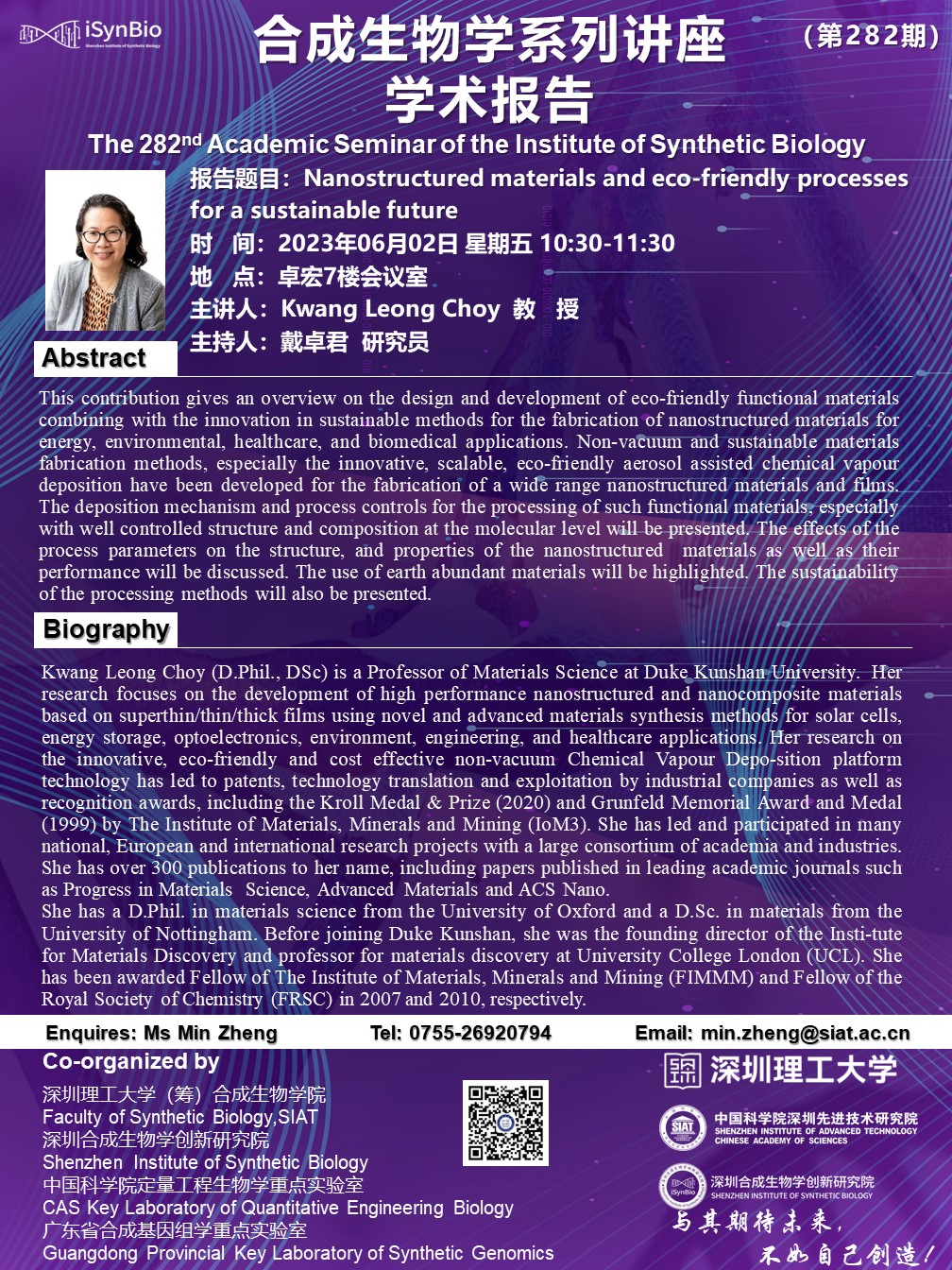 本次讲座邀请了 昆山杜克大学 Kwang Leong Choy 教授 带来题为“Nanostructured materials and eco-friendly processes for a sustainable future”的报告。