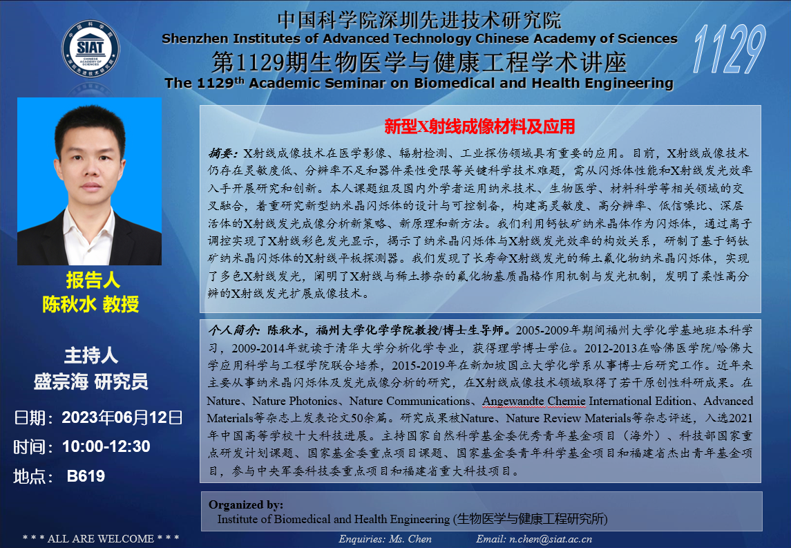 本次讲座邀请了 福州大学 陈秋水 教授 带来题为“新型X射线成像材料及应用”的报告。