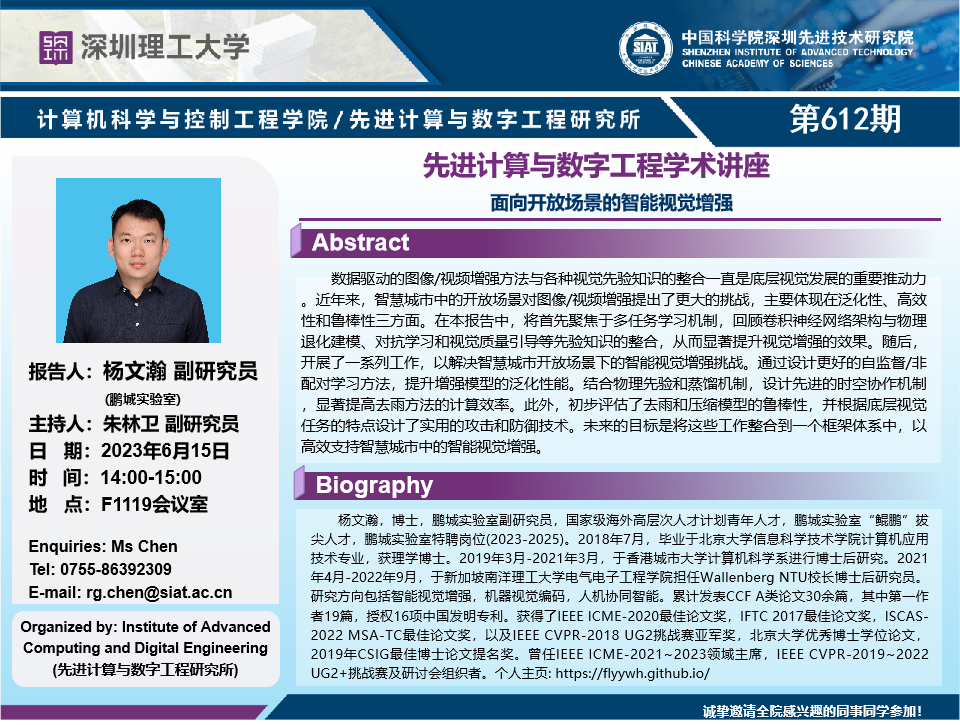 【2023年6月15日 计算机学院/先进计算与数字工程研究所】面向开放场景的智能视觉增强