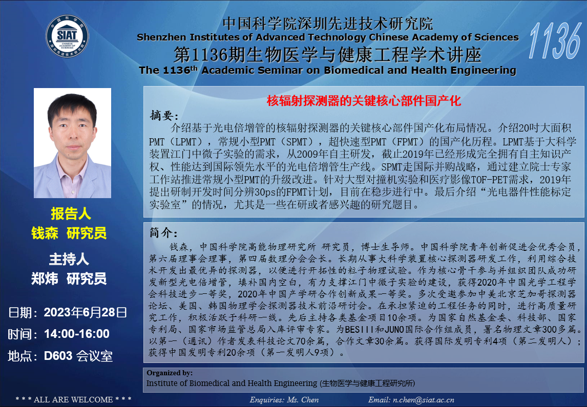 本次讲座邀请了 中国科学院高能物理研究所 钱森 研究员 带来题为“核辐射探测器的关键核心部件国产化”的报告。
