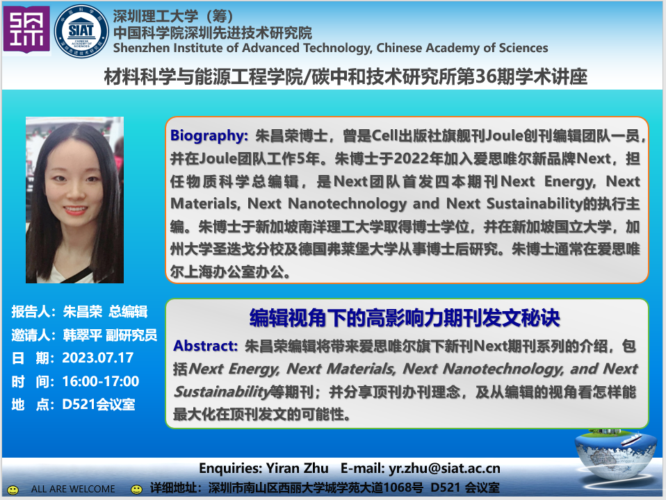 【2023年7月17日 材料科学与能源工程学院/碳中和技术研究所】编辑视角下的高影响力期刊发文秘诀
