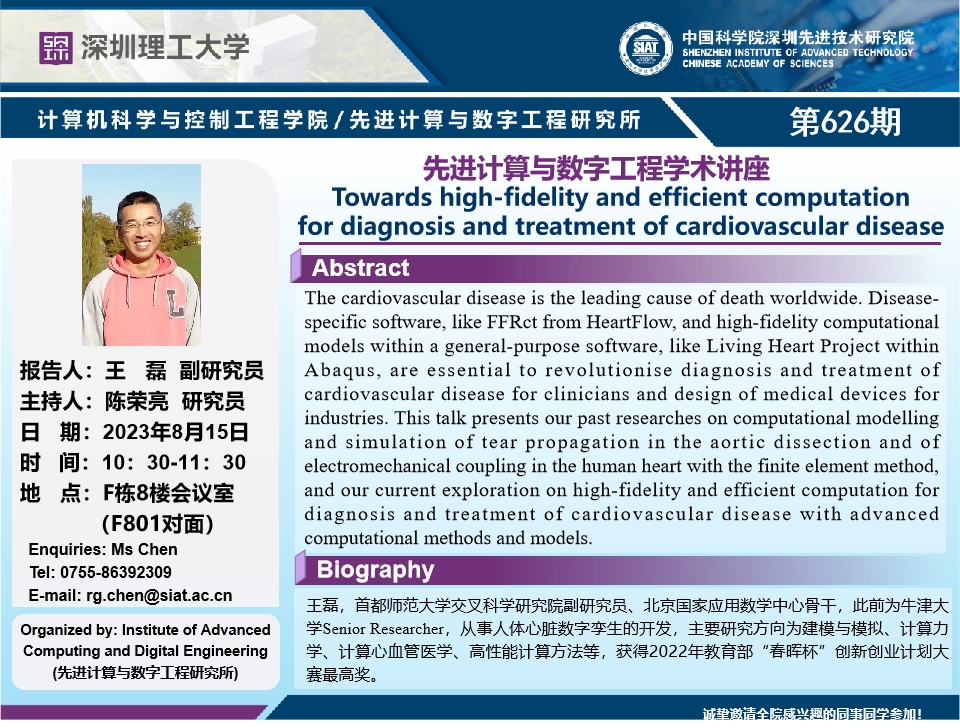 【2023年8月15日 计算机学院/先进计算与数字工程研究所】Towards high-fidelity and efficient computation for diagnosis and treatment of cardiovascular disease