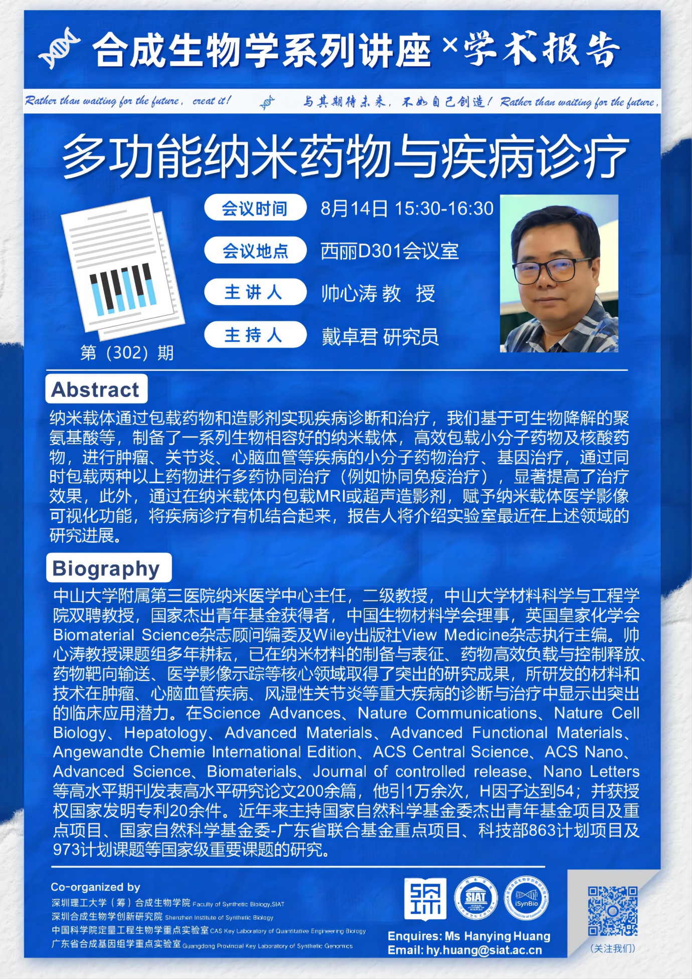 【2023年8月14日 合成所/合成生物学院】多功能纳米药物与疾病诊疗