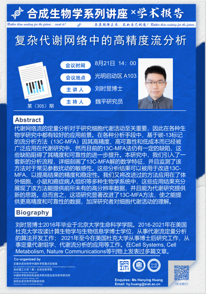 【2023年8月21日 合成所/合成生物学院】复杂代谢网络中的高精度流分析