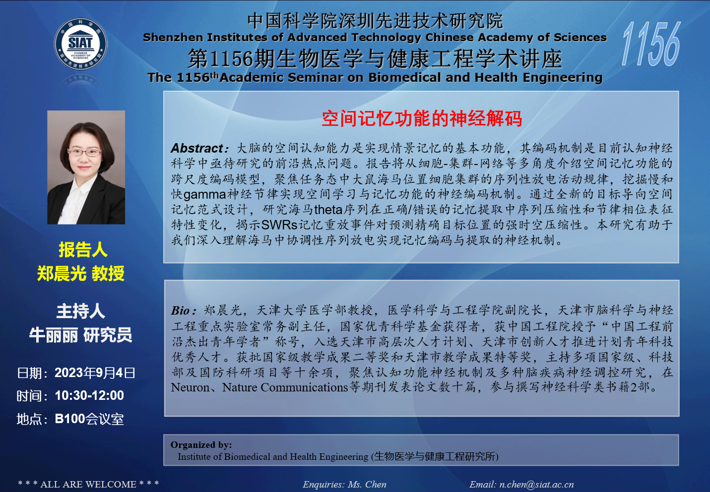 医工所第1156期学术讲座将于 2023年9月4日(周一) 10:30-12:00 在B100会议室举行。