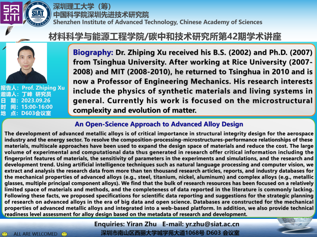 【2023年9月26日 材料科学与能源工程学院/碳中和技术研究所】An Open-Science Approach to Advanced Alloy Design