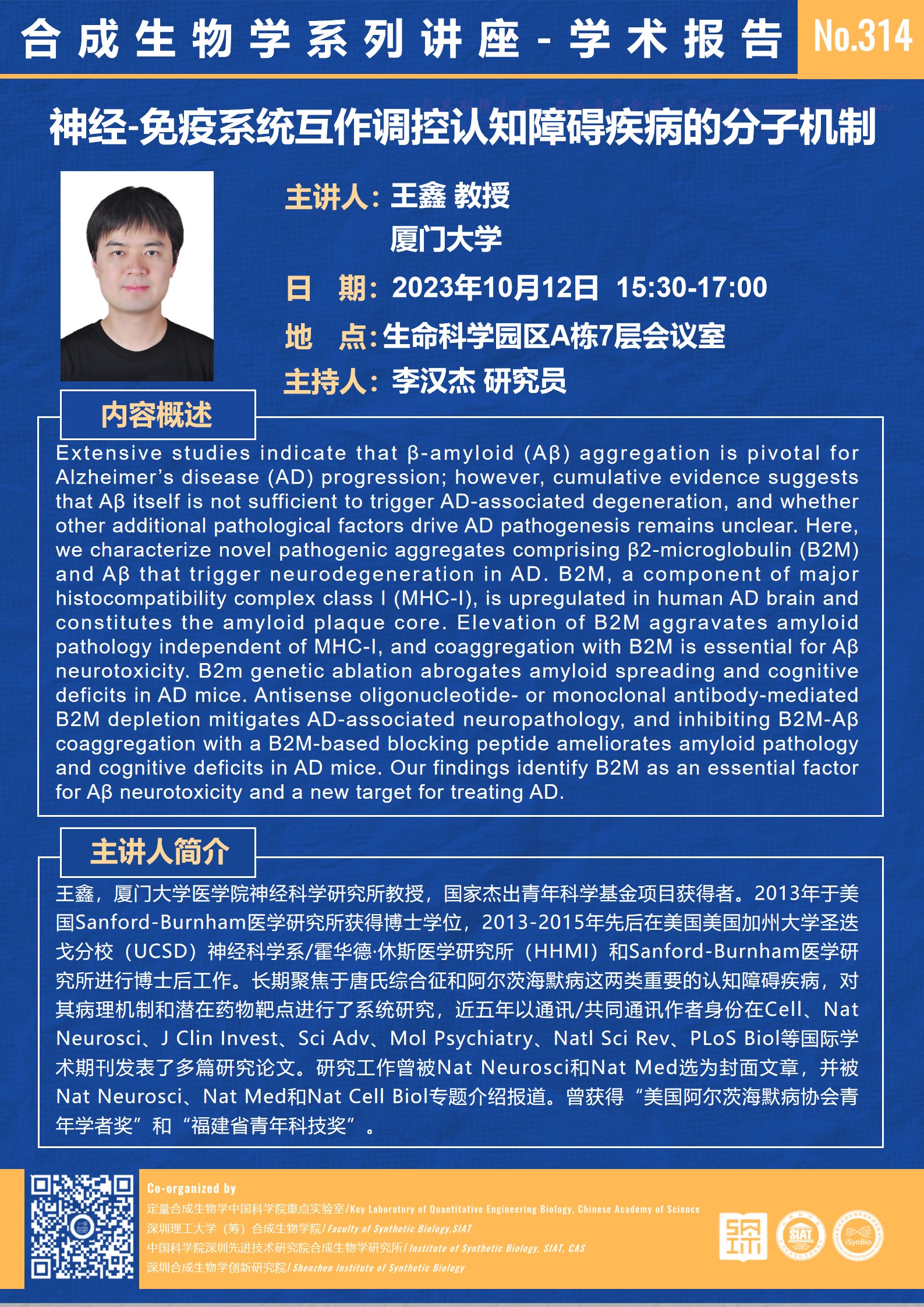 【2023年10月12日 合成所/合成生物学院】神经-免疫系统互作调控认知障碍疾病的分子机制