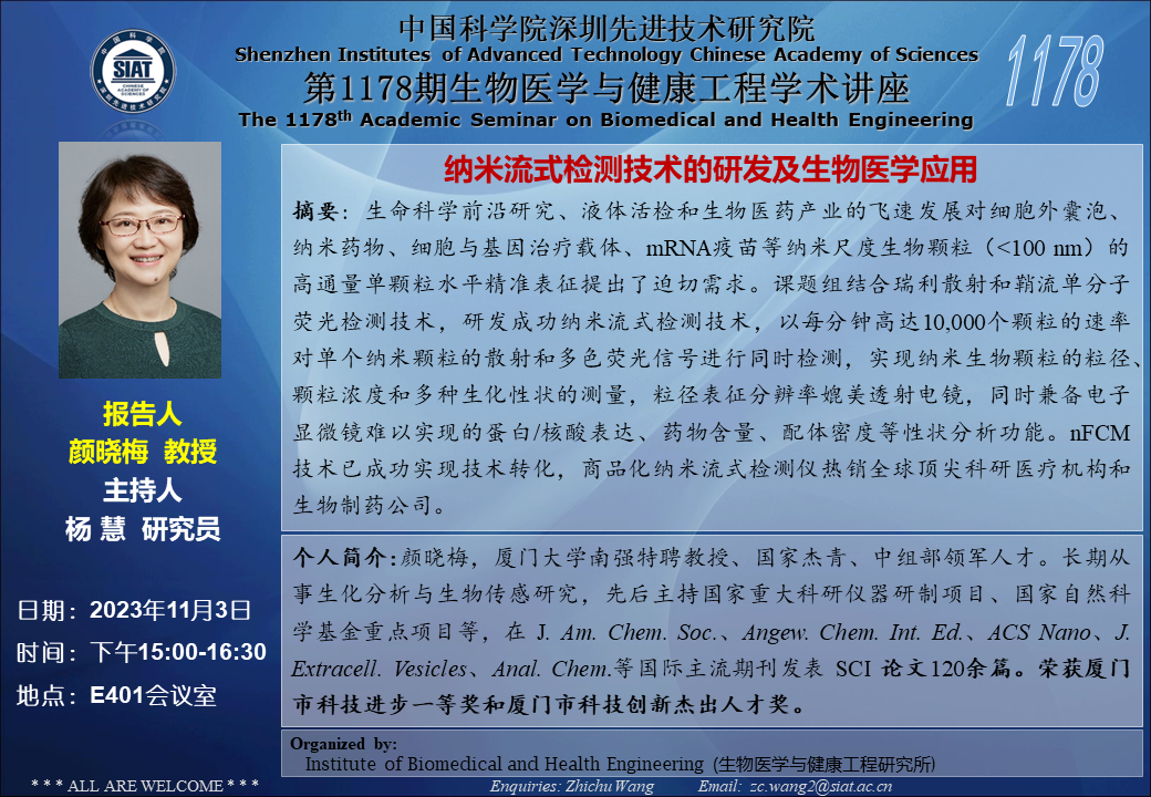 【2023年11月3日 医工所】纳米流式检测技术的研发及生物医学应用