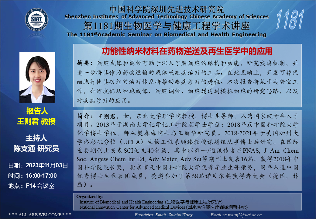 【2023年11月3日 医工所】功能性纳米材料在药物递送及再生医学中的应用