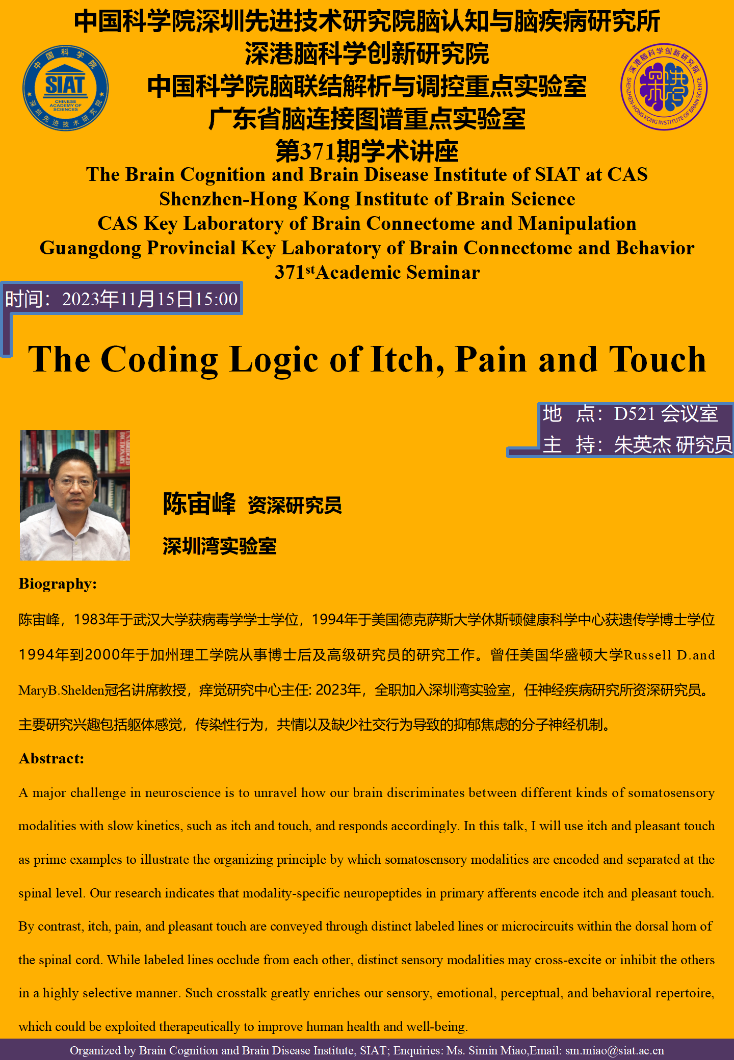 【2023年11月15日 脑认知与脑疾病研究所】The Coding Logic of Itch, Pain and Touch