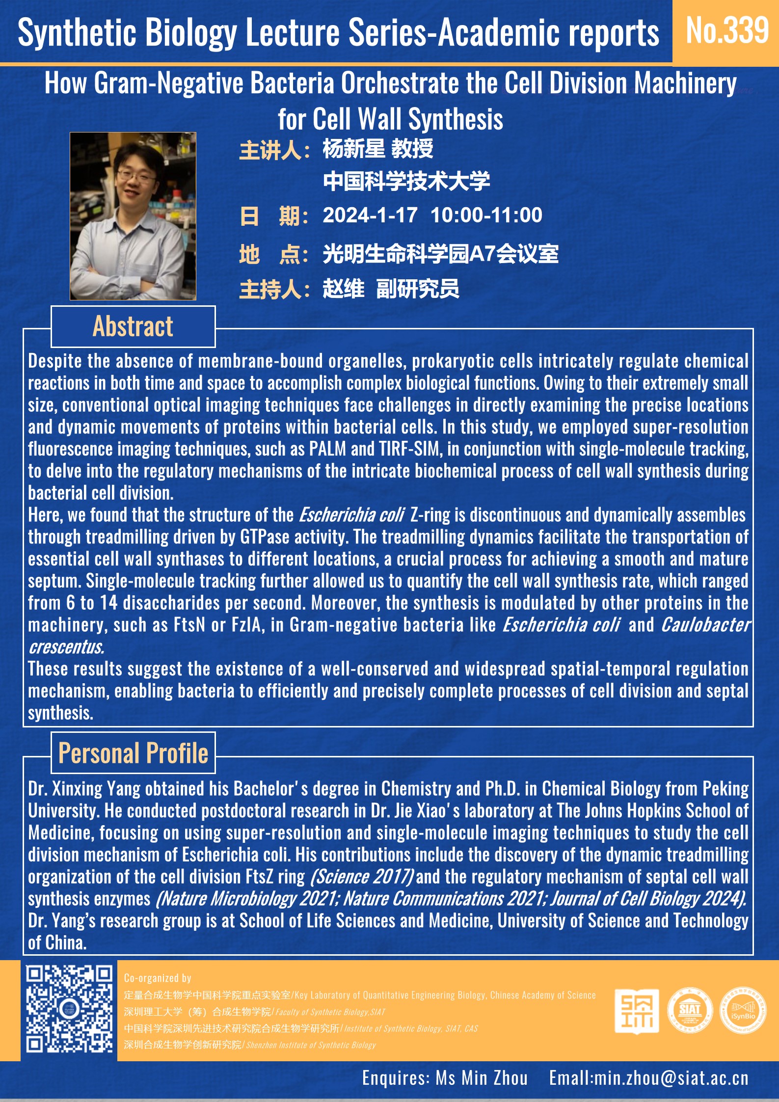 本次讲座邀请了 中国科学技术大学 杨新星 教授 带来题为“How Gram-Negative Bacteria Orchestrate the Cell Division Machinery for Cell Wall Synthesis”的报告。